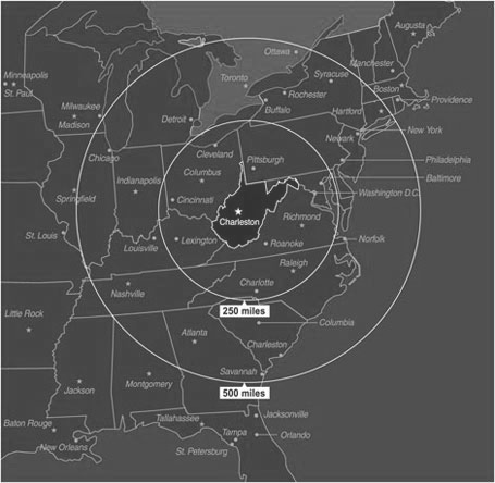 West Virginia is within 500 miles of more than half of the U.S. population - and a third of the Canadian population.